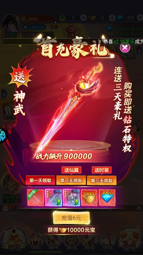 3、首充送武神,购买即送钻石特权