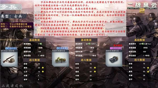 7、需留意的是,步兵的防御数值为0,而摩托化的防御数值为50,相较之下,步兵显得更为“脆弱”。