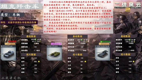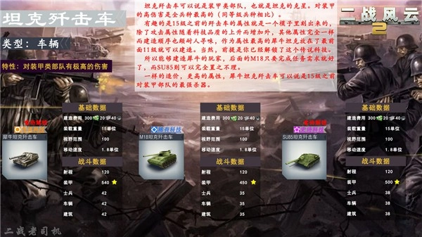 3、在15级之前,这三台歼击车的情况基本相似,几乎如同一个模子刻出来的,任选其一使用均可。它们主要的作用是取代使用起来不太便捷的反坦克炮。