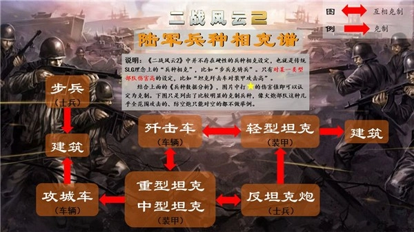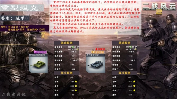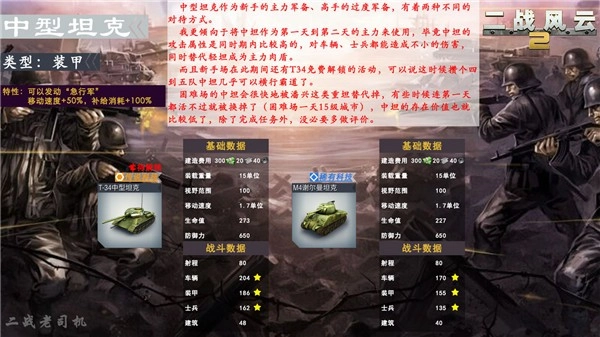 3、既然大家都承担肉盾的职责,确实没啥特别的使用技巧可讲。不过有两点值得注意,一是要巧妙运用急行军这个技能,二是坦克可向敌方后排突进,从而对敌方的车辆部队造成大量伤害。