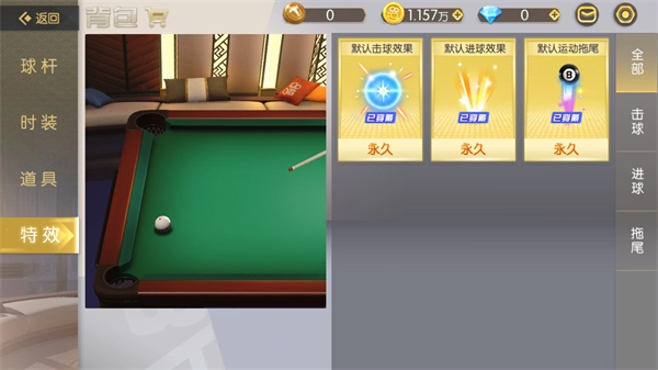 尖端巧粉,杆杆随心,游戏中配置多种属性、不同品质外形的球杆和球桌,超炫球技,彰显至尊身份。