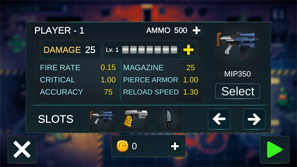 在持续闯关的过程中,还能利用积累的金币对武器和角色进行升级。