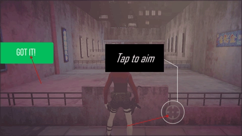 打开手机里的流氓特工游戏,进入后先点击左侧的“继续”按钮,再点击右侧的“瞄准”按钮。