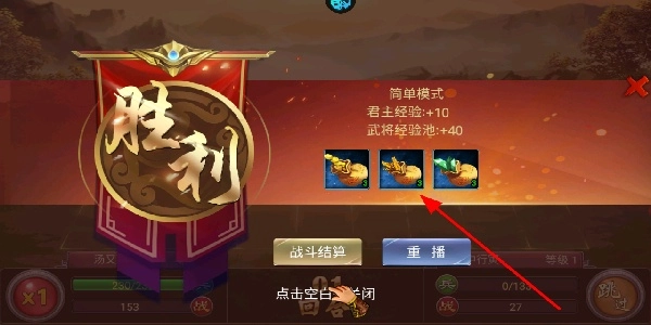 战斗获胜后可领取奖励,获得君主经验、武将经验以及道具资源,这些奖励能用于提升角色和武将的实力。