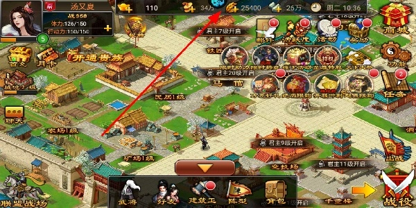 经营城池,升级各类建筑、通过发展来获取资源,以此提升城池的等级与实力,为后续的战斗和发展提供坚实支撑。
