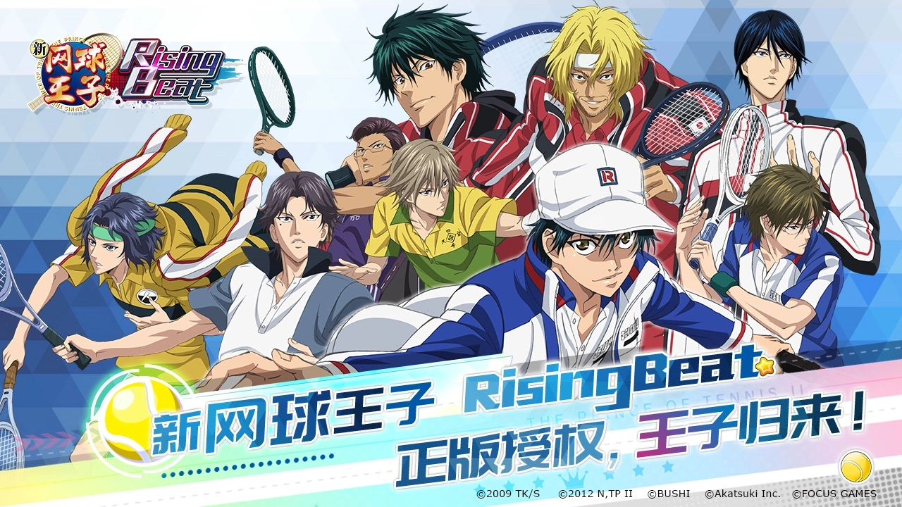 《新网球王子RisingBeat》由日本AkatsukiInc.公司研发,分众游戏独家代理。作为一款人气音乐游戏,它延续了《新网球王子》的故事脉络,原作中众多角色都将在游戏里亮相,还有别具一格的游戏系统等你探索!