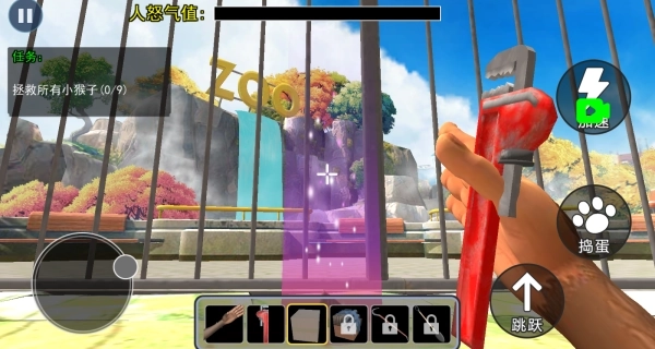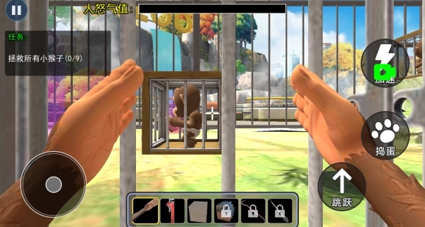 4、巧妙运用“捣蛋”技能来吸引游客的目光,同时留意观察“人的怒气值”,在确保不会引发过高怒气的前提下,抓住机会借助工具破坏笼子。