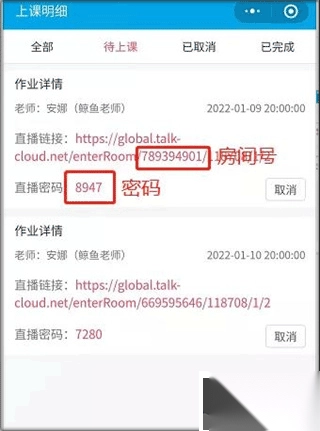 1、首先通过拓课云plus小程序来获取房间号和密码