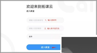 2、然后打开拓课云plusAPP,输入房间号和密码,即可进入教室