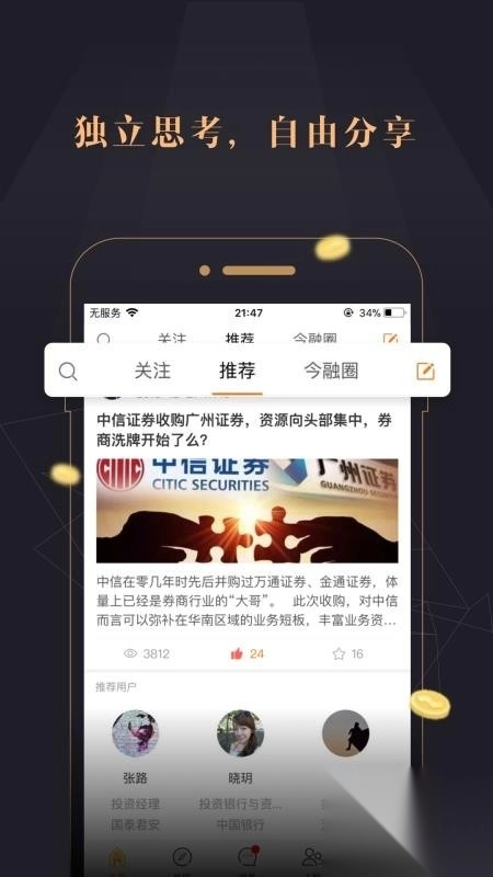 能够为用户打造一个金融圈,在此用户能够查看各类金融动态分享。
