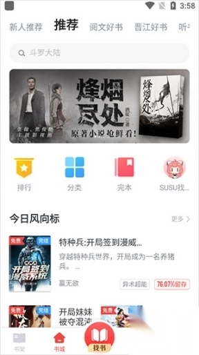 新人推荐、阅文好书、晋江好书、听书、上新、精选、男生、女生、出版;