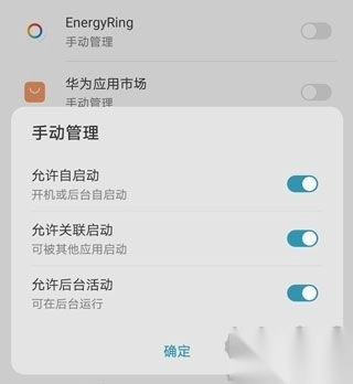 3、自启动管理操作如下:打开手机管家,将其设置为手动管理模式,然后把三个自启动选项都开启,以此确保能够正常运行。