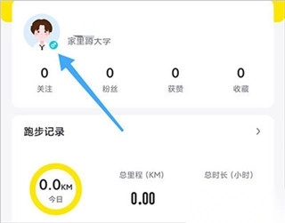 1. 第一步,于本站下载并安装小步点校园跑app。安装完成后,打开app,点击界面下方“我的”选项,进入个人中心,接着点击个人中心里的头像。