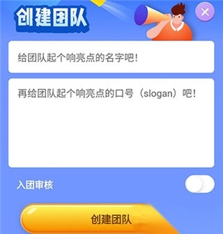 3、于创建界面中输入您的团队名称、口号slogan等信息,完成后点击“创建团队”按钮,如此你们便能成功成团开启跑步活动啦。
