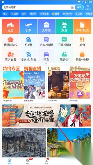 1、语音功能:只需开口,就能查询酒店、机票、火车票以及景点门票信息。