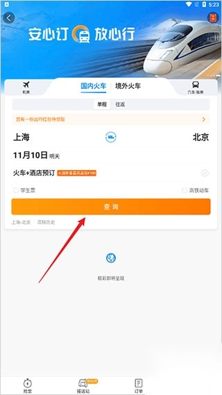 携程火车票网上订票查询方法如下: