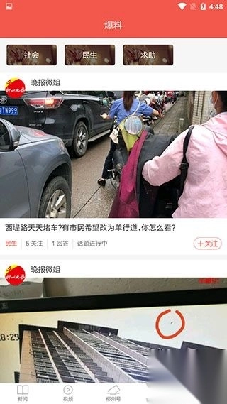4、在爆料板块当中,是用户随手拍举报身边违法的功能,用户还可以发帖讨论;