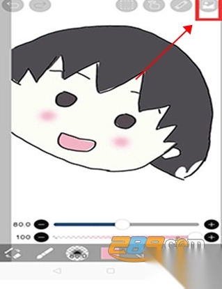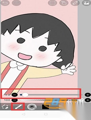 接着用画笔,这里选的是软蘸笔4.9粗细,将小丸子的轮廓描出来。