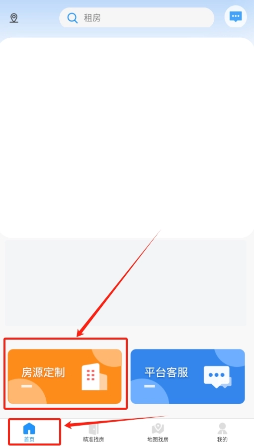 3、登录成功返回首页,找到 “房源定制” 选项,点击就能开始筛选想要的房子。