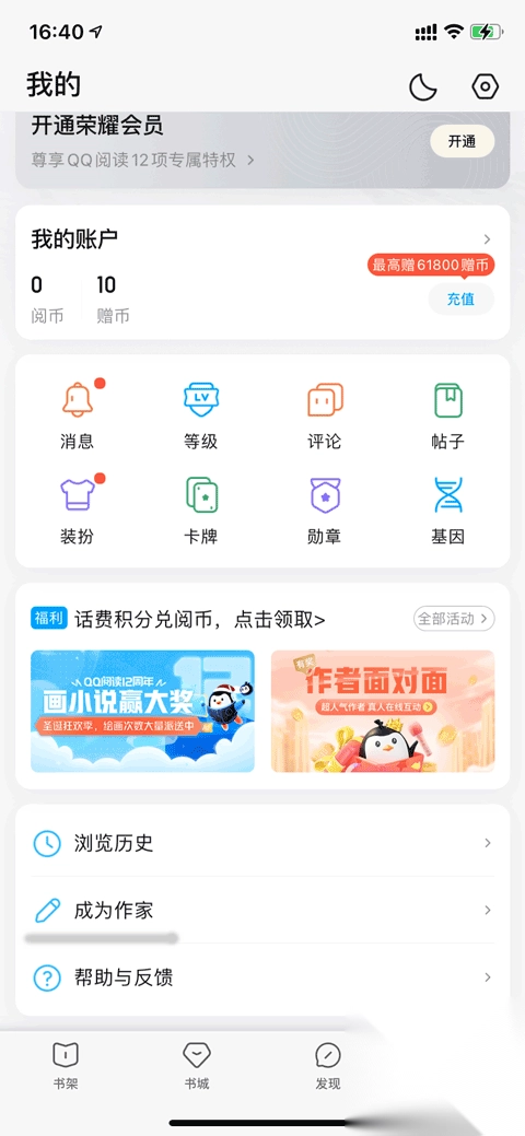 1倘若你热爱写故事,脑海中有着诸多有趣的构思,并且文笔也较为出色,那么不妨尝试在QQ阅读平台撰写小说。其操作十分简便,打开QQ阅读应用后,轻点底部的“我的”,接着就能找到“成为作家”这一选项。