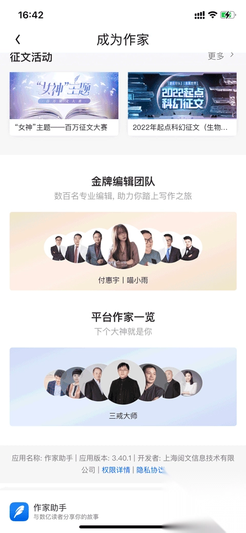 2、依旧是在底部菜单,点击“立即写作”,此时会提示你下载“作家助手”APP ,下载完成并安装好后,登录你的账号。