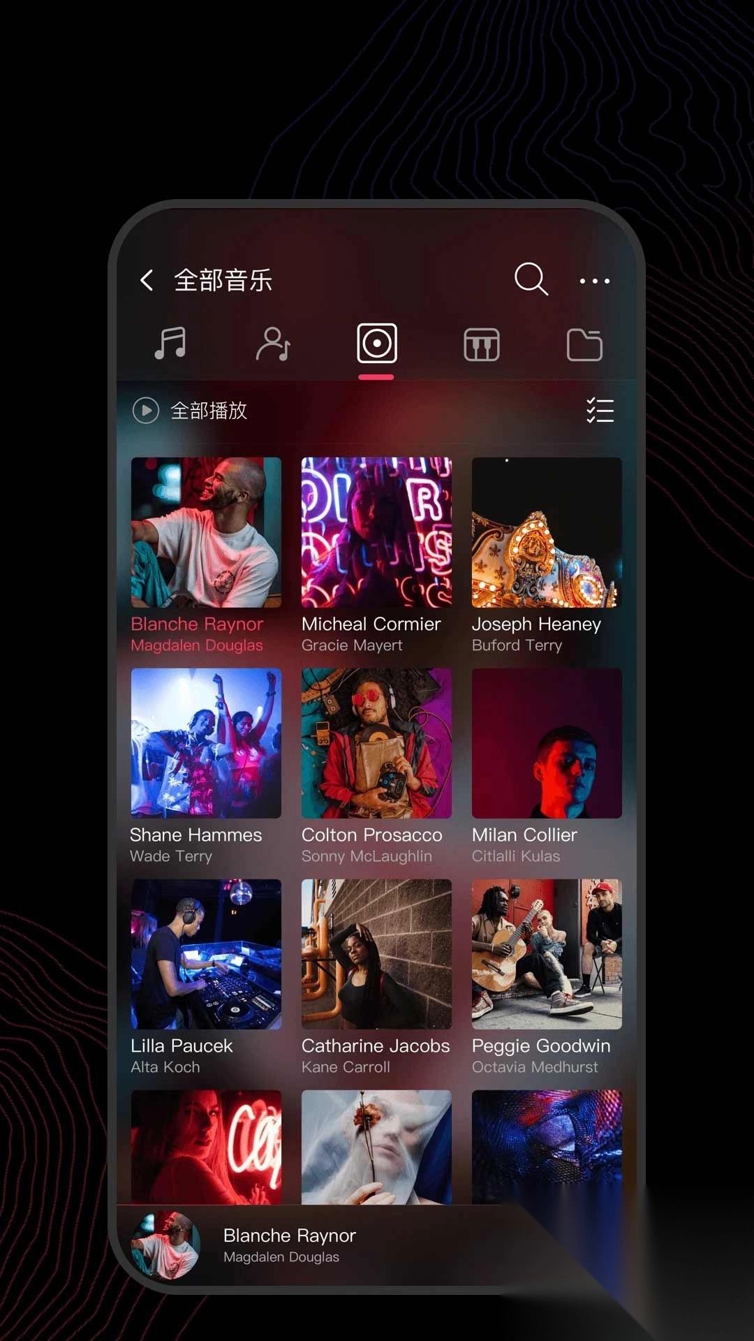 5、支持按全部歌曲、专辑(依音轨号排序)、艺术家、风格、文件夹、自定义列表等分类进行播放。