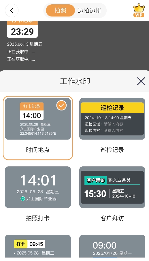 2、行业专属模板丰富多样。精心提供工程巡检、考勤打卡、旅行记录等8大类200+专业水印模板资源,全面满足不同场景使用需求。