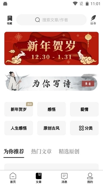 「诗词创作」:你所创作的每一首诗,都会被大量读者朗读,同时你还会收到关于这首诗的读后感。
