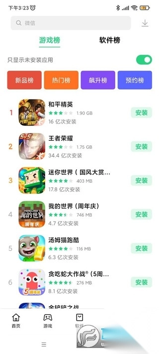 4、排行可以查看游戏和软件的各项排行指标;