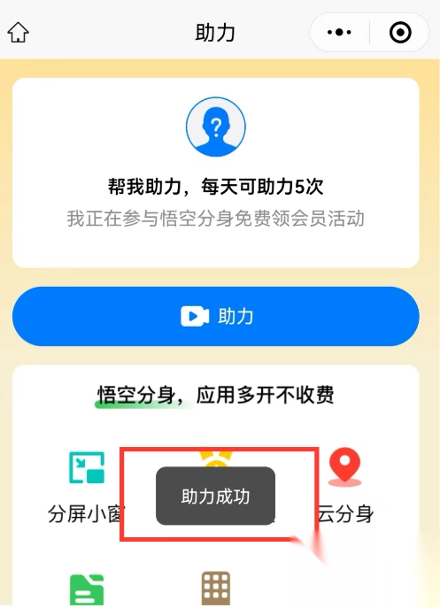 【悟空分身双开小程序,免费领取会员,每日不收费】