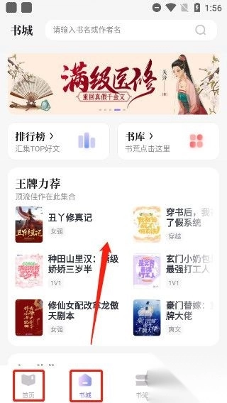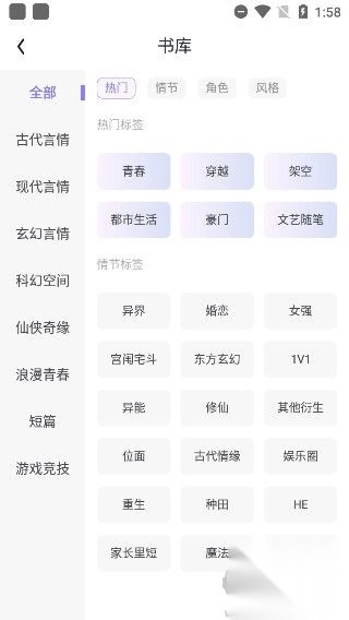 2、进入【书城】点击【书库】,通过各个大小分级标签定位感兴趣的小说类型。