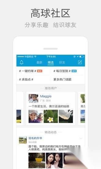 在这儿,你会结识到同样钟情于高尔夫的伙伴,随时随地在线畅谈感悟、分享经验,更能创建群组尽情畅聊,让这项运动不再形单影只。