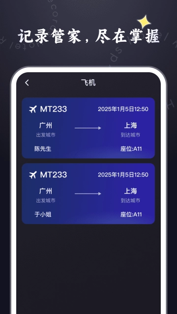 您可随时对记录进行查询、修改或删除操作,确保行程安排条理清晰,让您出行毫无后顾之忧。