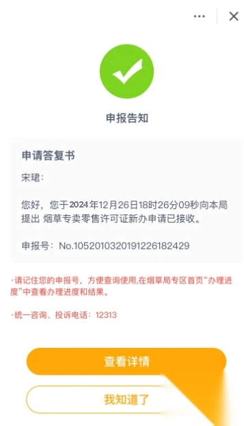 4、申请成功即可凭申报号查看办理进度和结果。