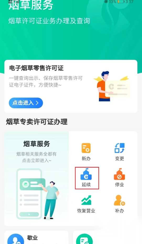 多彩宝app烟草证延续申请流程