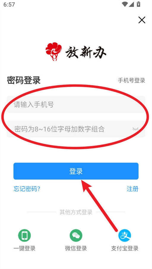 1. 在相应位置输入手机号和密码,接着点击“登录”按钮,即可进入放新办平台。