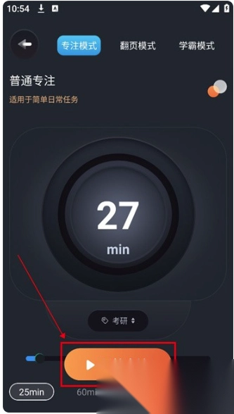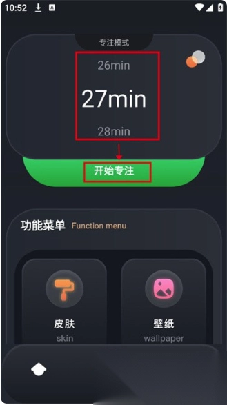 1. 开启反拖延计时器,进入主页后通过上下滑动来设定时间,随后点击“开始专注”即可启动。