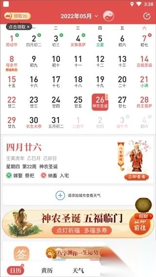 提供黄道吉日查询、精准天气预报、二十四节气提示等实用功能,满足日常所需。