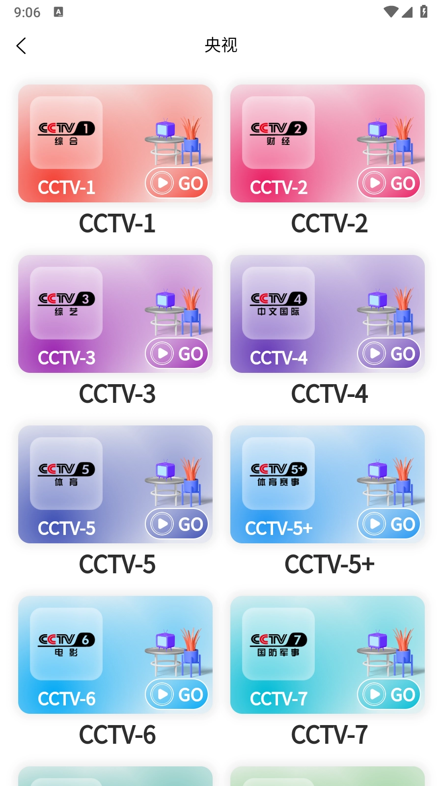 3. 拿央视台来说,当进入央视页面后,便能看到所有的CCTV电视频道。