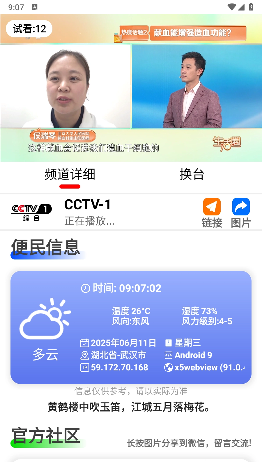 4. 轻点相关频道,即可在线观看。向下滑动页面,还能浏览到便民信息。