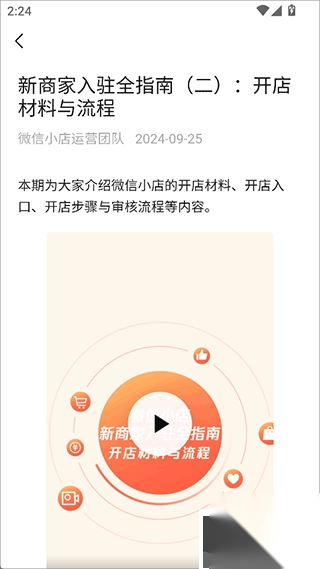 3、在App中,有关于开通所需材料、流程的视频,同时也有经营的商品类目及品牌相关视频。