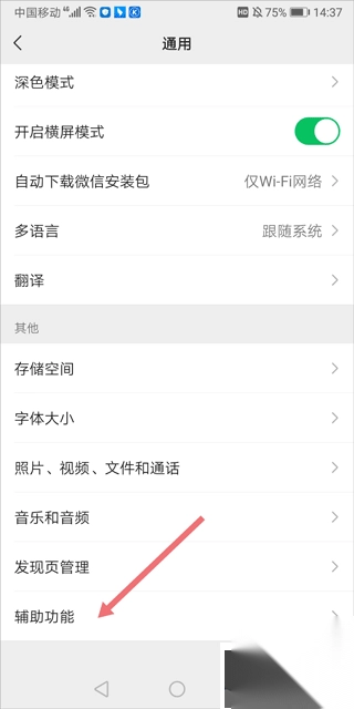 1、当开通微信小店后,在微信App的设备页面点击【通用】选项,接着点击【辅助功能】。