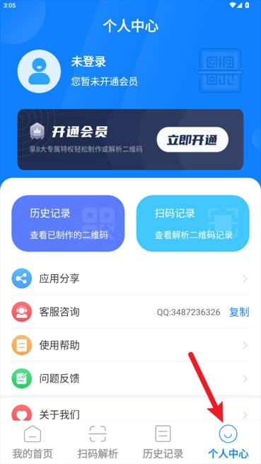 4、于个人中心,可进行记录查询、联系客服以及反馈相关事宜。