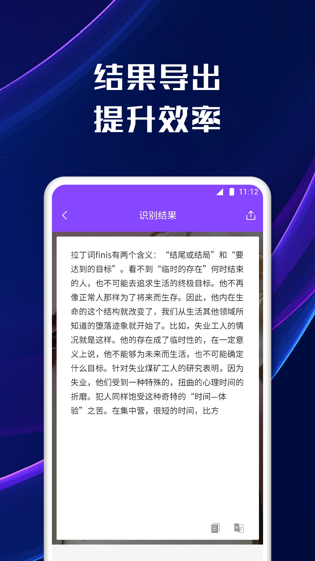 3. 完成扫描操作后,点击“识别文字”按钮,此操作会把图片内容转化为能够编辑的文本,且该功能支持中文、英文、日文等多种语言。