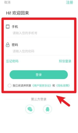 1. 开启APP,登录界面既支持通过输入手机号与密码进行登录,也能够选择微信或QQ的快捷登录方式。