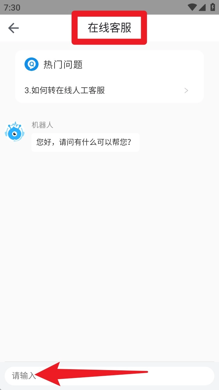 3. 若遇到疑问,点击「在线客服」,即可进入聊天窗口,机器人会即刻回应。若问题未解决,还能转接至人工客服进一步处理。