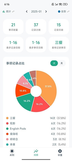 1、多样化记录类型:支持添加文字、图片、数字、评分等多种内容。