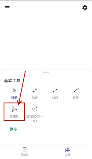 1. 第一步,我们要打开geogebra几何画板,在这款软件里点击【多边形】工具,接着在操作页面上展开绘制。