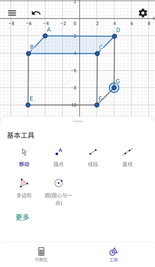 可以在上面画点、向量、线段、直线、多边形、圆锥曲线等,从而轻松求出答案