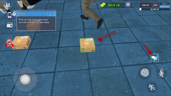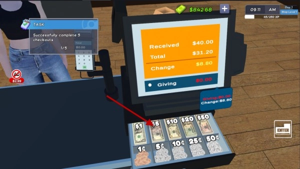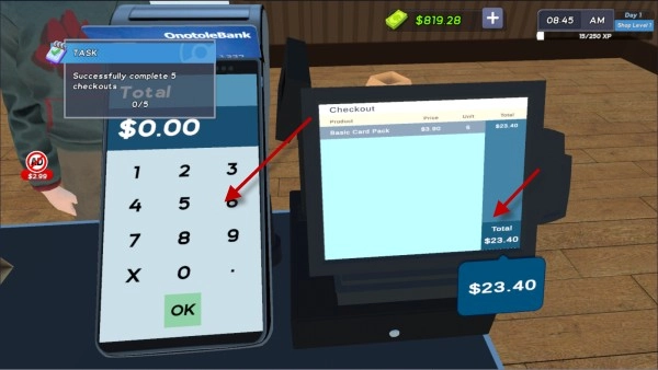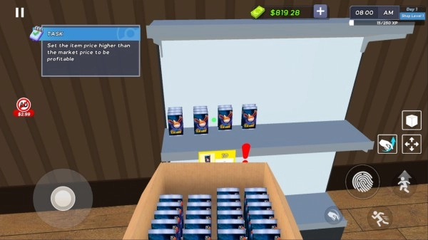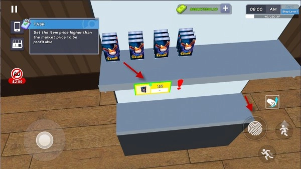2、在游戏中手动完成上货和结账的操作,模拟经营中的日常。